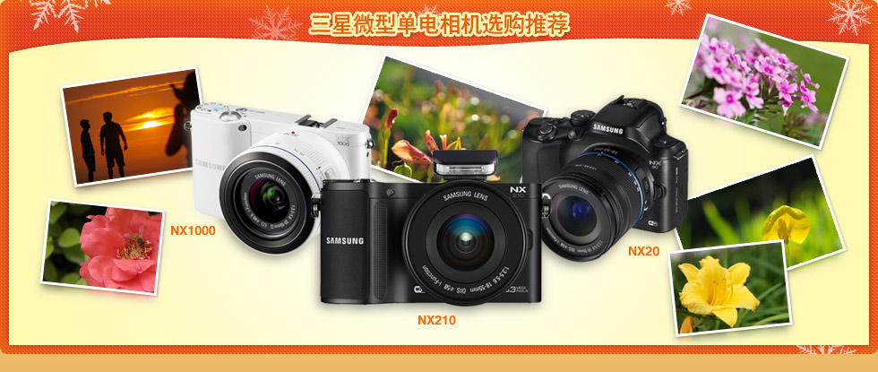 在NX系列中,三星今年首次推出了型号为四位数的NX1000智能单电。虽然与NX20采用了同样的CMOS传感器,但三星NX1000取消了内置电子取景器后,在体积上和造型上比NX20更为时尚可爱,操控上也相对简单...【