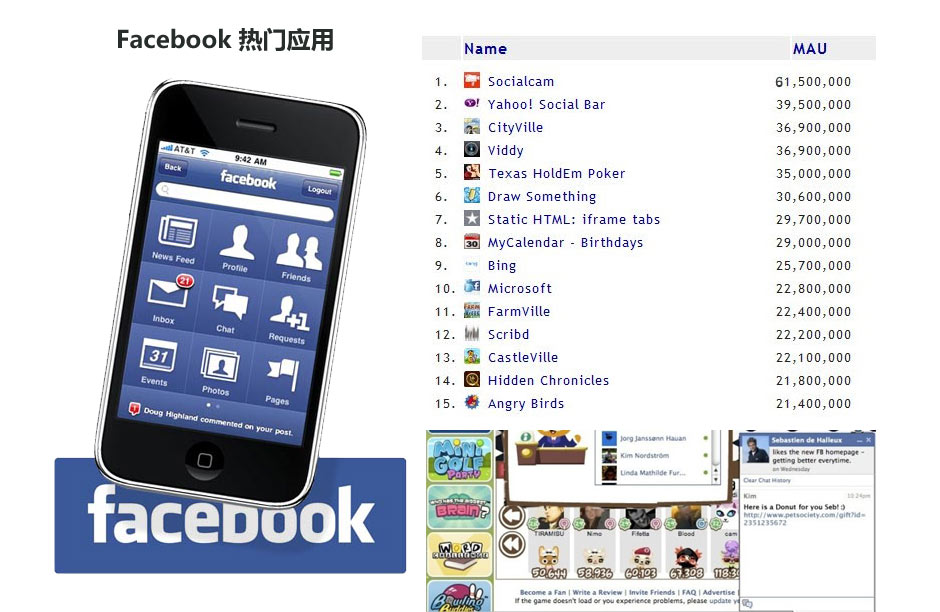 业内看好Facebook长线发展 Facebook的奥秘具有强大的威力,以致于我们心里都在认为Facebook真的是大二不倒。Facebook将不会失败,会一直保持增长,其速度会让我们想起了1999年网络股泡沫时的心态,加油Facebook。 |