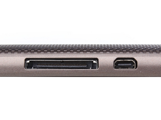 左侧是专用的超薄数据接口,右侧是用于输出的Mini HDMI接口