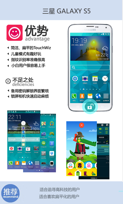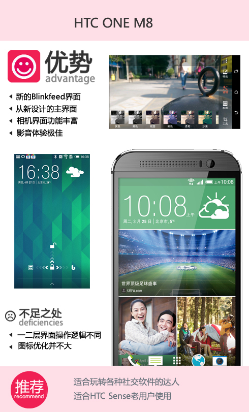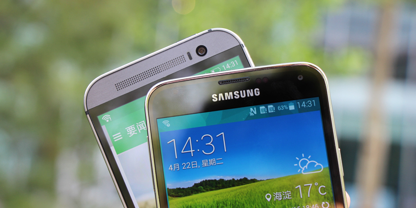 两款手机笔者也过一段时间,下面分享点细节体验。HTC ONE M8金属质感手感非常棒!有时放在桌子上我都怕划伤它那细腻的皮肤,不过也有人觉得很像保温杯,其实不对,超市里的保温杯绝对没有这样的工艺!您需要慢慢品味。而三星GALAXY S5虽然没有太大变换,但机身居然支持防水了,这要比之前丑爆了的S4三防版本要进步不少!.[详细]